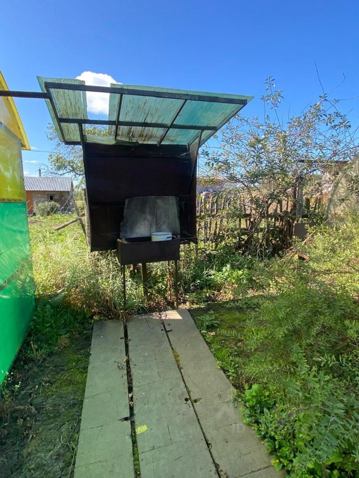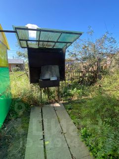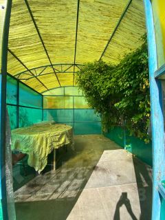 Огород, теплица, посажены плодовые деревья.