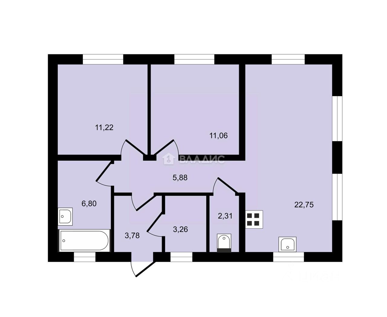Спальни - (11,22+11,06)кв.м.