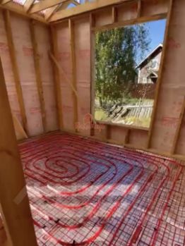 Возведен на ленточном фундаменте, залиты монолитный цоколь и монолитная ж/б плита. Утепление плиты и щедрая разводка теплого пола - в фотографиях. Вокруг дома выполнена отмостка. Кровля - металлочерепица. Окна - двухкамерные стеклопакеты (3 стекла).