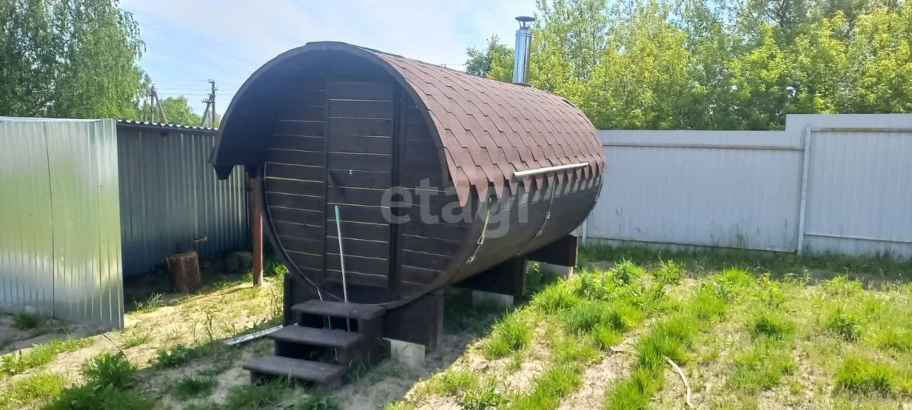 На участке установлена отличная новая баня-бочка.