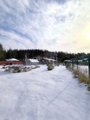 - Участок благоустроен, есть хоз. блок и теплица. Посажены плодовые деревья и кустарники. Небольшой огород с высокими грядками.