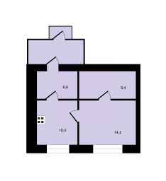 Кирпичный дом 1960 года постройки подходит для круглогодичного проживания. Общая площадь части дома составляет 40 кв. м., том числе 2 жилые комнаты площадью 9,4 и 14,2 кв. м., кухня площадью 10 кв. м. В коридоре выделено помещение для устройства санузла. Приобретена сантехника. Установлены окна ПВХ.
