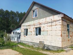 Жилой дом (недострой) 2 этажа, фундамент монолитный, крыша- металл черепица, стены-Пено блок, снаружи стены- пеноплекс, окна- пластиковые стеклопакеты, высота потолка 3 м.
