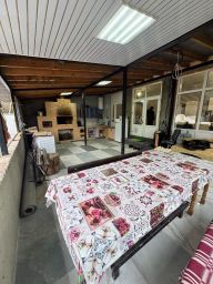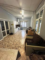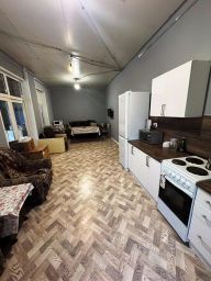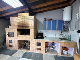 1 этаж: терраска (летняя кухня: мангал, очаг под казан, русская печь) 10 м2., душевая 3 м2., котельная с твердотопливным котлом 2 м2., кухня-гостиная 22 м2., две комнаты 15 15 м2., холл 14 м2..
