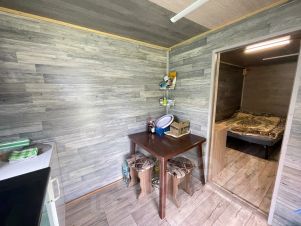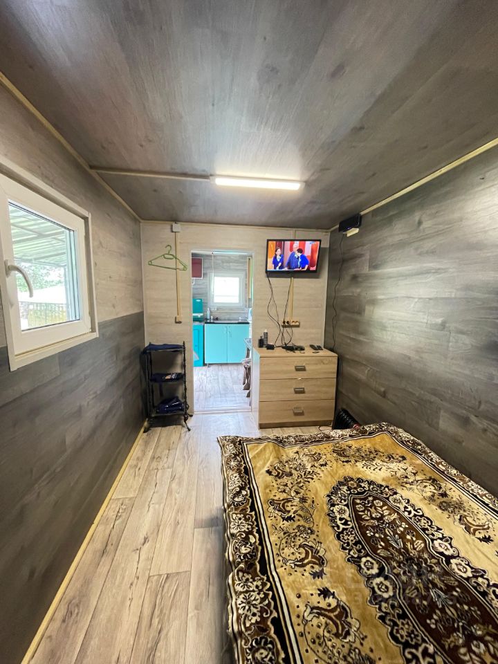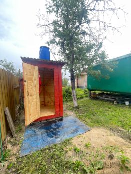 На участке установлены два новых вагончика, которые оборудованы под кухню и спальные места. В вагончиках есть окна . Металлические, открывающиеся ставни позаботятся о Вашей безопасности . Внутри каждого вагончика всё чисто, сделан косметический ремонт , подведено электричество . Стабилизатор напряжения нового образца. На территории участка есть сарай для хранения инструментов, установлена большая ёмкость для воды, душ, туалет.
