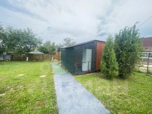 Участок расположен на южной стороне. Полностью обработан . Имеется ухоженный газон. Весь участок ограждён по периметру забором из металлопрофиля. Имеется место под два автомобиля.