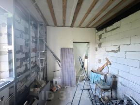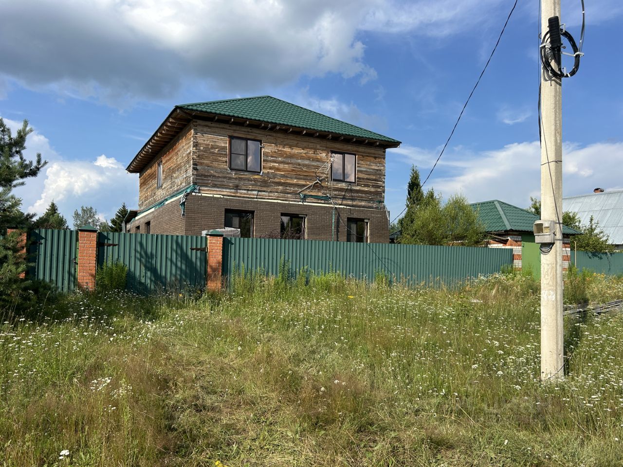 ЖИЛОЙ ДОМ: Дом двухэтажный (1-й этаж - блочный, 2-й этаж - бревенчатый), на отличном ленточном фундаменте, утеплен, общей площадью 225 кв.м. Дом с частичной отделкой. Снаружи дом почти полностью отделан декоративным кирпичом. На первом этаже - терраса блочная без окон (надо вставлять), коридор, холл, кухня, зал и комната. На втором этаже - холл, помещение для сан.узла и три раздельные комнаты. Вставлены окна ПВХ, установлена входная дверь. По всему дому установлены радиаторы, коммуникации в дом проведены. Бойлерная со всем оборудованием пристроена к гаражу. Дом 2019 года постройки. В доме уже сейчас можно проживать круглый год (отопление газовое, электричество разведено, вода в дом шлангом заведена) и доделывать внутреннюю отделку. Кадастровый номер: 33:01:001425:294.
