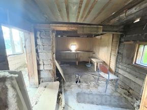 ЗЕМЕЛЬНЫЙ УЧАСТОК: Земельный участок 19.6 соток, ровный, сухой, не обработан (зарос), огорожен комбинированным забором (по фасаду - профлист с въездными воротами и с других сторон - сетка-рабицы). Кадастровый номер: 33:01:001425:88, отмежеван. На участке расположены: хоз.блок, кирпичный гараж, с блочной бойлерной, площадью 27 кв.м., 2019 года постройки, и бревенчатая баня с новой блочной пристройкой, без внутренней отделки, площадью 28.5 кв.м.( для бани сделана отдельная канализация), 2019 года постройки.