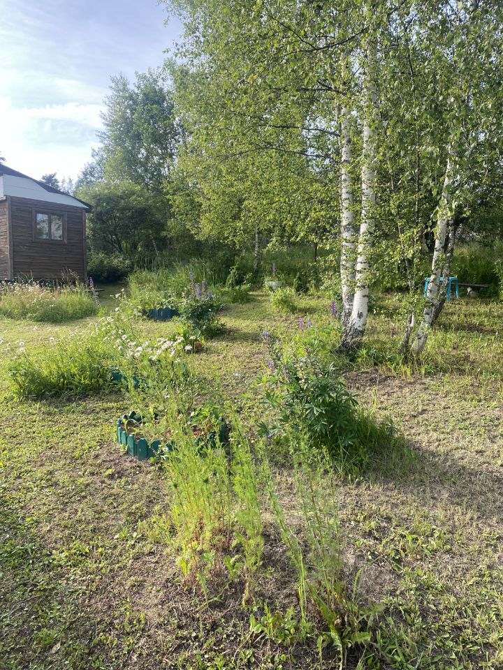 Часть участка занимают березы, создавая прохладу в летний зной, так же есть кусты смородины и жимолости.