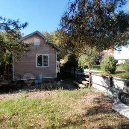Имеются насаждения: все сортовое, в т.ч.клубника (плодоносящая и вкусная), малина ремонтантная (ягоды до морозов), черешня, яблоня, слива, крыжовник, миндаль и лесной орех, японская ива и розы. Огород с грядками - примерно 1 сотка.