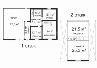 На первом этаже две жилых комнаты, кухня-гостинная, раздельный санузел. На втором две просторных комнаты и большая открытая веранда.