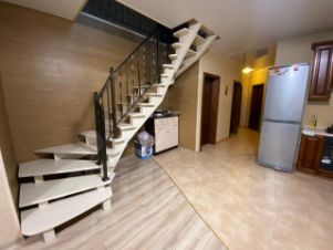 Внутренняя отделка стен первого этажа обои. Санузел, котельная, и кладовка облицовка плиткой. Потолки из гипсокартона в спальне, детской и котельной. Натяжные потолки в зале-кухне, прихожей, гардеробной и санузеле. Полы ламинат и плитка.
