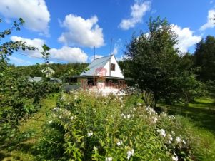 Общая площадь 70 м2. Возведён на ленточном фундаменте в 2013 году. Каркасный дом для сезонного проживания. Внешняя отделка - сайдинг, внутри же обшит вагонкой. Установлены деревянные окна.