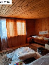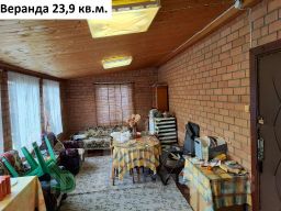 Продается дом фактической площадью 219 кв.м. (в ЕГРН 129,3 кв.м.) на участке 19 соток (22х85 метров) в СНТ "Буяны-2" (Киржачский район, Филипповское МО). Дом 1993 года постройки, кирпичный, двухэтажный. Подвал площадью 65 кв.м., потолки в подвале 1,7 метра. Фундамент - бетонные блоки. Крыша шифер, со снегозадержателями. Полы доска дерево. Окна деревянные двухкамерные. Потолки 2,6 метра. На первом этаже: веранда 25 кв.м. (диван, два кресла, два стола, стулья, холодильник), спальня (кровать, кресло, стул, тумбочка под телевизор), комната (кровать, два кресла, комод), гостевая (диван, полки, шкаф), кухня (два стола, стулья, полки, холодильник), раковина. На втором этаже две комнаты. Зимняя вода в дом подведена из колодца (5 колец). Отопление печное и электрическое. Газовый баллон. Гараж кирпичный 8х5 метров с бетонным фундаментом, вагончик для бани обшитый кирпичом 7х2,5 метров, беседка шестигранная 4х3 метра, навес арочный. Душ летний, туалет на улице. Грядки теплицы 3х6 метров. Участок ровный, сухой. Забор по периметру из металлических прутьев, кирпичные столбы. Плодовые деревья, яблони, смородина, крыжовник, слива. Выложены дорожки. Подъезд к участку круглогодичный. Заезд с двух сторон. Дорога асфальтированная. На территории СНТ магазин, детская площадка, КПП охраны, въезд на территорию через шлагбаумы. Тихое, уютное место, вокруг лес, в шаговой доступности река Шерна, там можно заняться рыбалкой. Часть соседей проживает круглый год. В лесу ягоды, грибные места. От дома до автобусной остановки 4,5 км, до автомобильной трассы 46К-7440 5 км, до города Киржач 30 км. Координаты чтобы подъехать (яндекс карты): 56.050932, 38.610409. Два взрослых собственника. Оперативный показ. Специалист по недвижимости - Светлана.