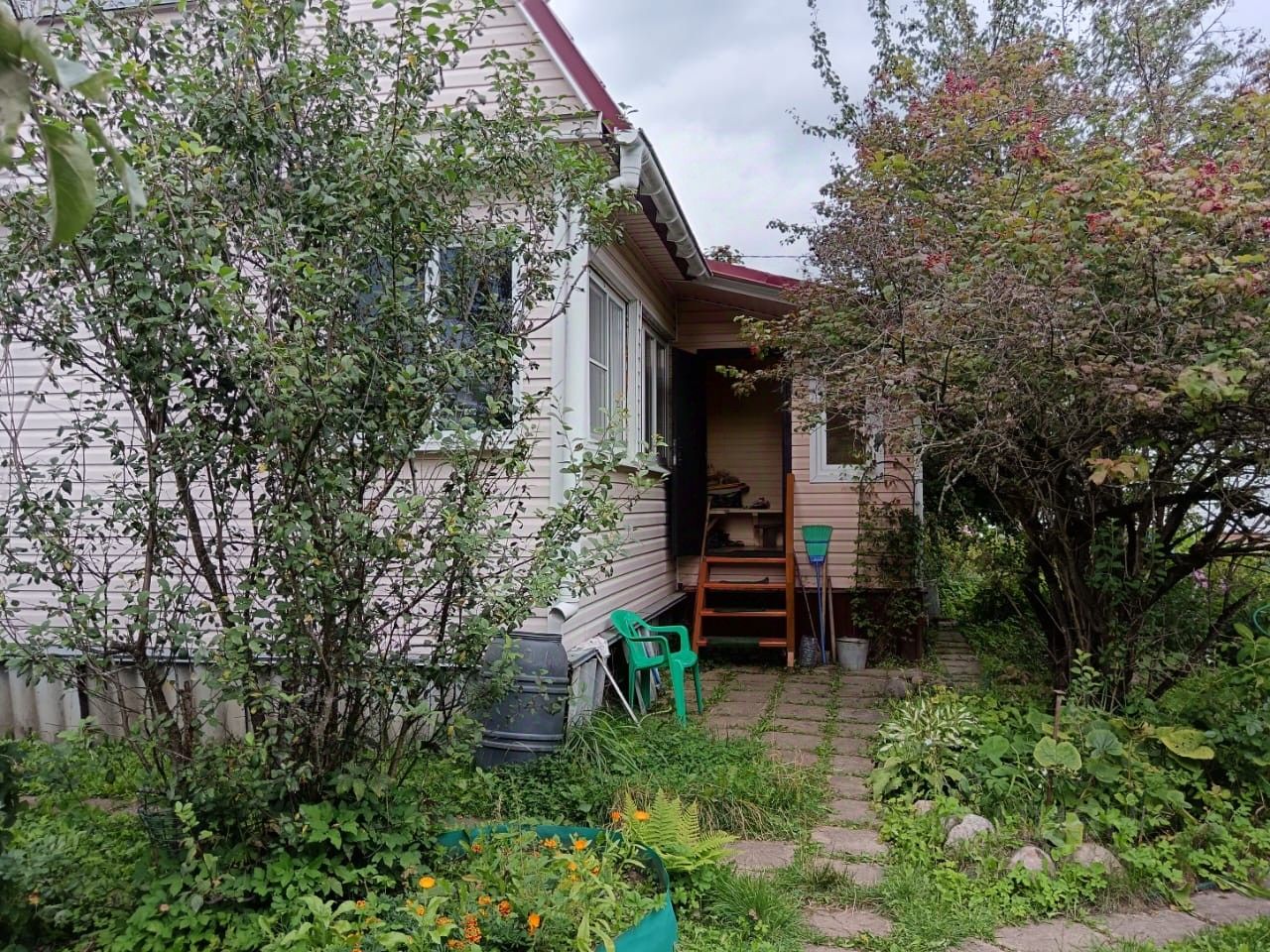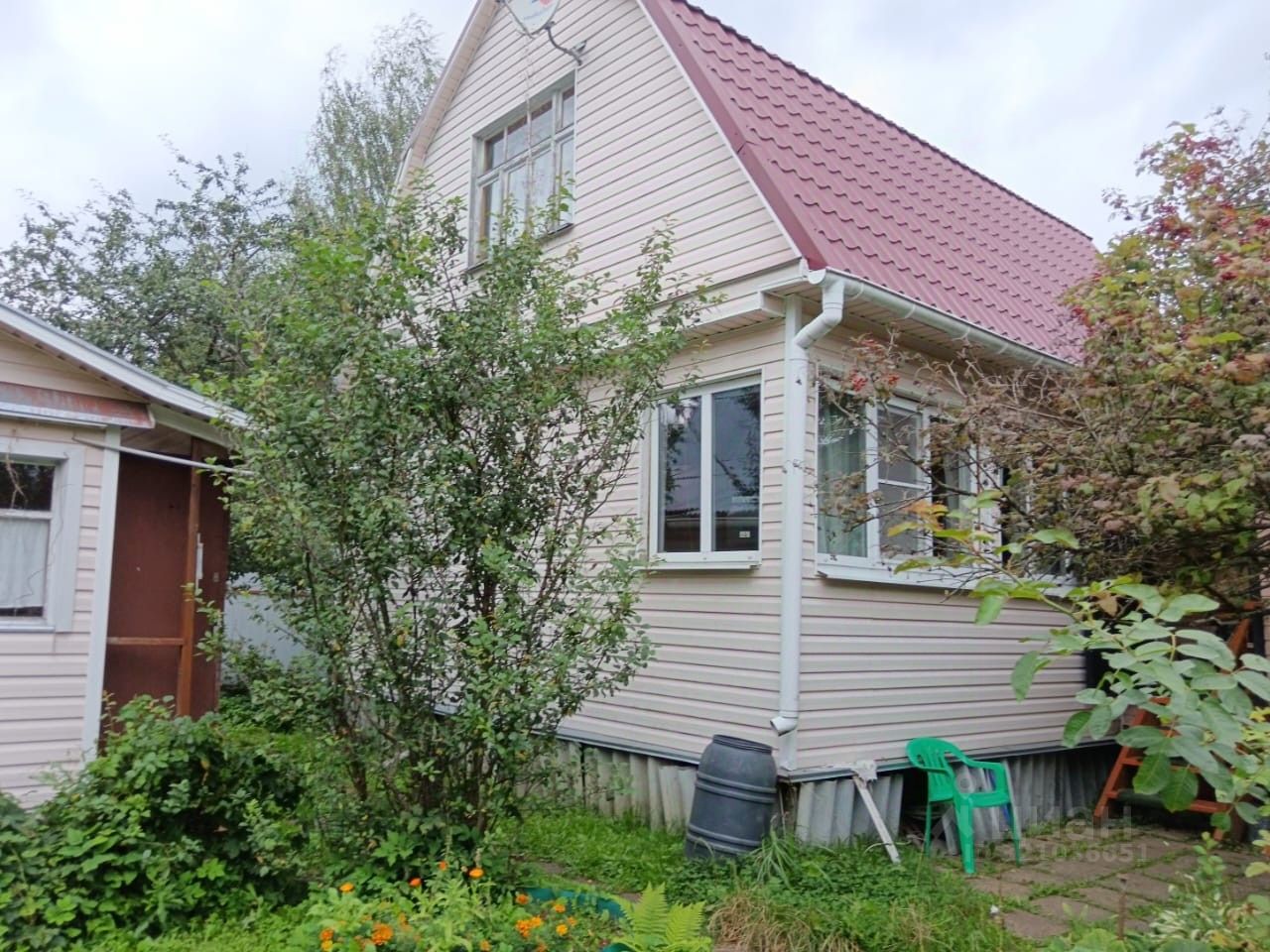 Участок 6,5 соток, огорожен. На участке есть баня из бруса площадью 28.5 кв.м., установлена качественная печь каменка, водонагреватель, душевая кабина, оборудована комната отдыха. Парильное помещение обшито вагонкой из липы; на участке: теплица, гараж-ракушка, туалет, дровник, много цветов, газон. Насаждения плодовые: яблоня, слива, малина, смородина, груша.