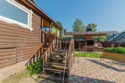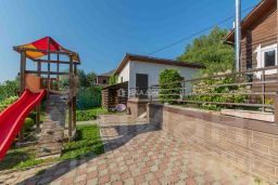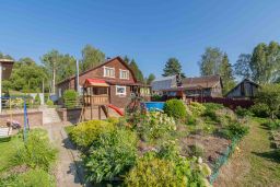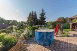 Двухэтажный дом с ровным и большим участком площадью 17.5 соток, на участке выполнен ландшафтный дизайн, а в конце участка есть свой искусственный водоем, где периодически разводят рыбу.