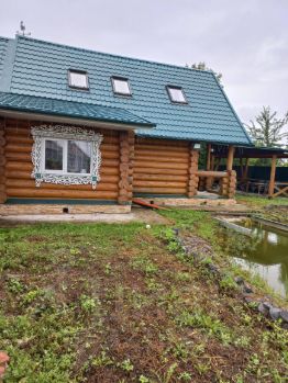 Домик в отличном состоянии!!! Всё есть!!!2014 г. Дом из бревна ручной обработки с кирпичным пристроем с жилой мансардной частью под метал. утеплён . крышей . Оконные блоки Саламандр на окосячке .Двери тоже на окосячке,полное отсутствие брусков в проёмах.Фундамент ленточный ,перекрытия пола по 1 этажу-двутавры пол двойной теплый.Отопление газовое,пол водяной .котёл новый двухконтурный.Вода центральная чистая ,в доме стоит не большой фильтр обычный.Электричество,проводка медная .Интернет ,телефон ,кабельное и спутниковое телевидение.Внутренняя отделка дерево шлифованное под лаком .Обои . Отдельный септик для ванны ,септик выкачной для др отходов.Пруд наливной под бутилкаучуком и камнем. Веранда огромная, капитальная на фундаменте ,застелена камнем.Баня полностью готова к внутренней отделке.Дорожка пол поликарбонатом.Гараж капитальный на ленточном фундаменте под ж/б перекрытиями площадью 90 м , отапливаемый электричеством.Усадьба огорожена железным забором.Фасад размером 29 м ,загорожен новым забором с калиткой и распашными воротами на ленточном фундаменте.Участок с ландшафтной планировкой,сухой .Новый колодец с питьевой водой.Соседи все адекватные ,местные жители .