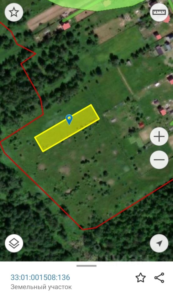 ОБЪЕКТ: Земельный участок 25 соток расположен на землях населенных пунктов, для ведения личного подсобного хозяйства. Участок отмежеван, границы уточнены - кадастровый номер участка - 33:01:001508:136. Участок покошен, слегка под склон, сухой, прямоугольной формы, огорожен частично столбами железными и установлены колышки. С задней части участка выход в овраг с пролеском, и внизу оврага протекает ручей.