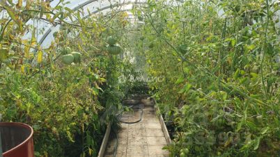 -Участок огорожен забором из проф-листа, Двое ворот, стоянка для автомобиля на территории участка. На участке две теплицы, грядки, плодовые деревья и кустарники. Дорожки вымощены тротуарной плиткой по всему участку.