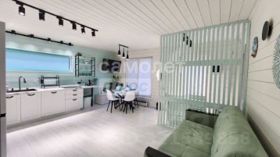 Стоит отметить удачную планировку дома, две оптимальные по площади очень уютные спальни выход из которых предусмотрен в просторную кухню- столовую, полностью обустроенную для вас по последним тенденциям дизайна. Кухонный гарнитур со встроенной бытовой техникой, удобная обеденная зона.