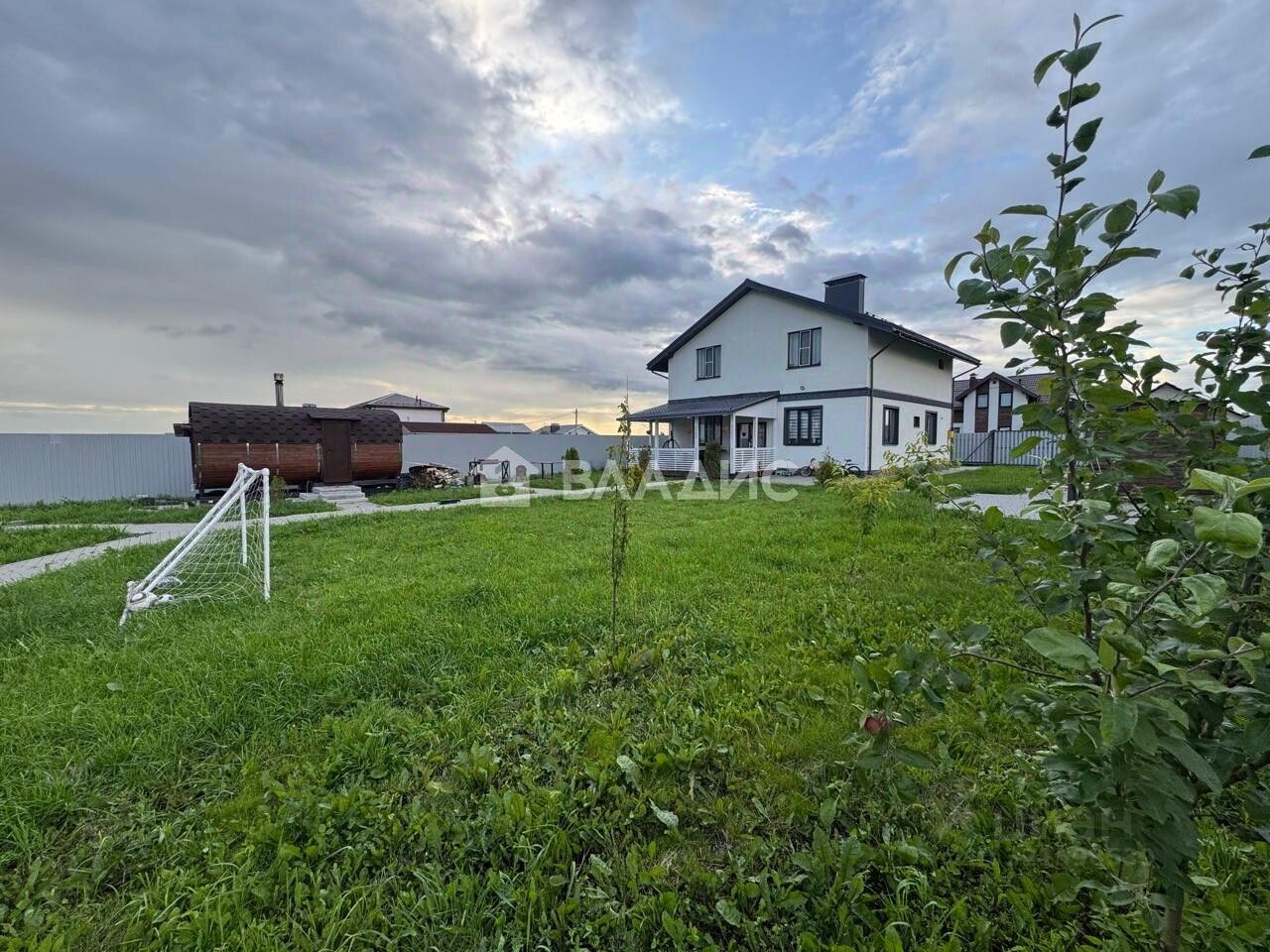 • Парковка на 4 машины, баня бочка (СВ-5 метров), газон и плодово-ягодные растения с туями.