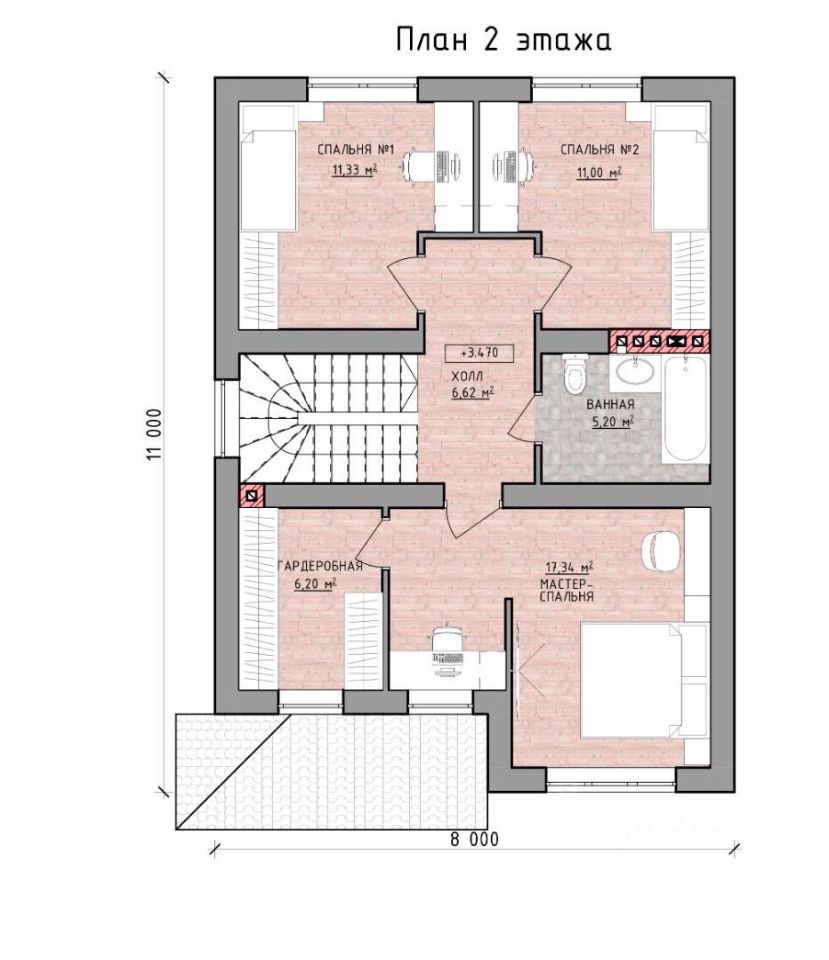• Спальня 2 — 11,00 кв. м