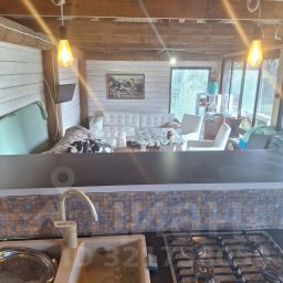 За домом располагается зона отдыха-большая закрытая беседка 50кв. метров с отоплением, встраиваемой летней кухней и барной стойкой. Это отличное место для душевных посиделок семьёй и с друзьями.