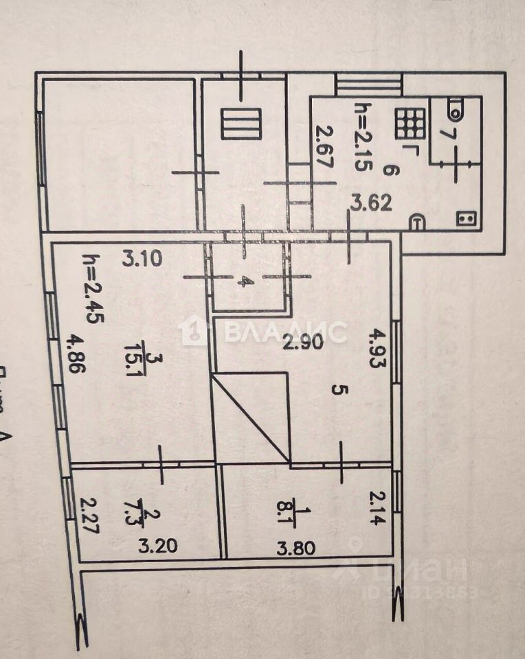 Дом построен в 1980 году, его общая площадь составляет 53,8 кв. м, из которых 28,3 кв. м — жилая площадь. Три комнаты с площадями 15,1 кв. м, 7,3 кв. м и 5,9 кв. м предлагают достаточно пространства для комфортной жизни. Кухня площадью 21,6 кв. м станет местом для кулинарных экспериментов и семейных ужинов.