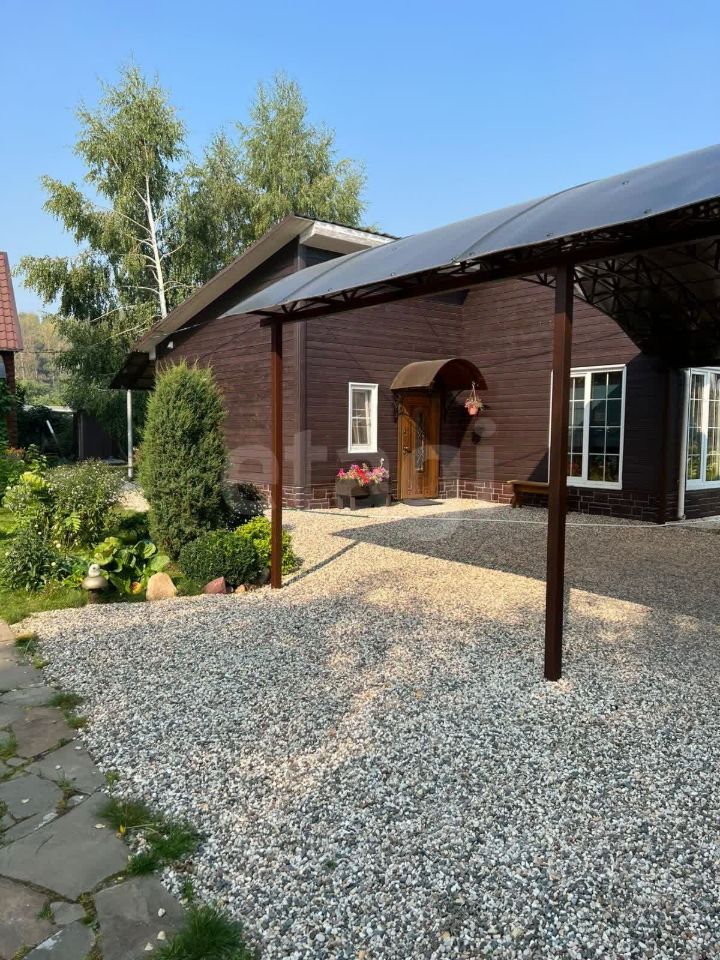 Участок огорожен металлическим забором по периметру (задняя часть сетка-рабица и живая изгородь). На въезде автоматические откатные ворота, с выделенной зоной парковки под навесом на металлических опорах. Участок ухоженный, засажен плодовыми деревьями и кустарниками.