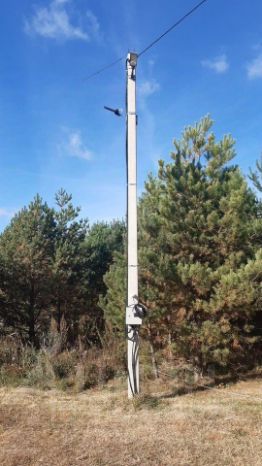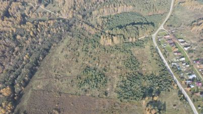 На участке частично молодой сосновый лес. К участку подведён газ. Вдоль участка проходит высоковольтная ЛЭП.