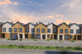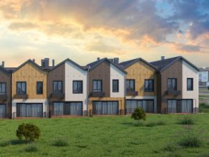 Экстерьер таунхауса выполнен с использованием современных природных материалов.