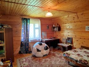 Построен из бревна на ленточном фундаменте!. Утеплн и обшит вагонкой, крыша покрыта шифером. На первом этаже просторная кухня и две комнаты, на втором большая комната! Внутренняя отделка вагонкой.