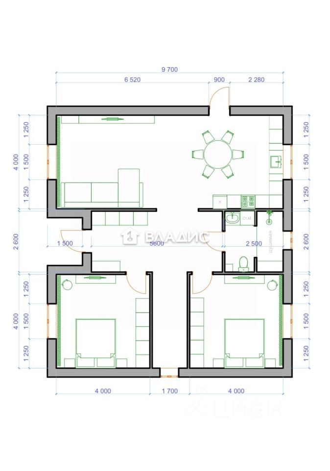 Дом 2-этажный, общая площадь - 160 кв.м.