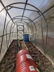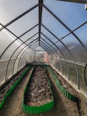 Участок разработан и подготовлен к новому сезону, организованы гряды, 2 теплицы, высажены плодовые деревья и сортовые кустарники, гарантирующие будущий урожай.