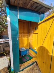 В центре участка площадью 4.4 сотки располагается небольшой дом из бруса облицованного сайдингом площадью 8 м² с двумя пристройками(мастерская и хозблок). Рядом с домом расположена современная беседка. По территории участка разведен летний водопровод, есть множество емкостей для воды. Территория по фасаду огорожена, выделена зона парковки для автомобиля. Вся мебель и инвентарь остается новым владельцам.