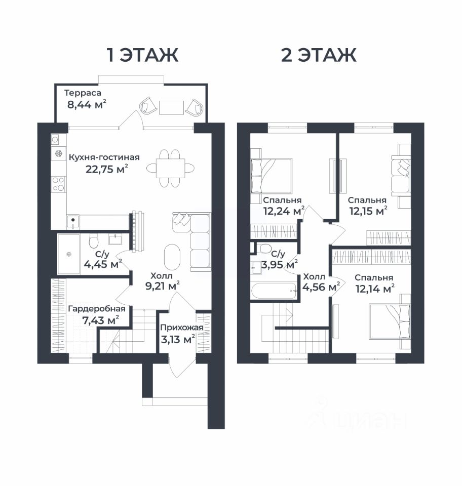 Продается двухэтажный таунхаус площадью 94,54 кв.м. с участком в Доброграде по адресу: ул. Удачная, дом 22, корпус 1.