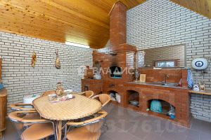 Коммуникации: электричество, газ (установлен газовый котёл BAXi), есть скважина, запитка воды на дом, баню т летнюю кухню идёт из колодца (две насосные станции установлены в специальном хозяйственном блоке), канализация - септик переливной. Интернет и ТВ проведены.
