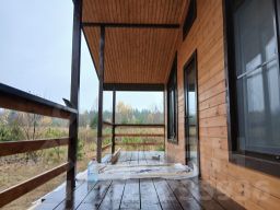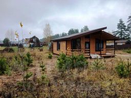 Одноэтажный дом размером 8x9 м. построен в 2025 году по современной каркасной технологии утепление стен 150 мм., фундамент сваино винтавой, декоративный цоколь . С внешней стороны стены обшиты вагонкой категории "A" и покрашены краской для внешних работ в три слоя, внутри дом отделан евровагонкой. Полы - шпунтованная доска толщиной 45 мм. Толщина утеплителя пола - 200 мм. Кровля - метало черепица . Входная дверь пластиковая с остеклением . Окна ПВХ - двухкамерные стеклопакеты (3 стекла).