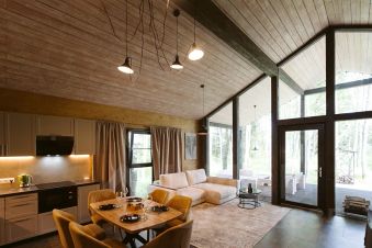 НОВЫЙ ПОДХОД К ВЛАДЕНИЮ ЗАГОРОДНОЙ НЕДВИЖИМОСТЬЮ. .Продается уникальный участок в лесу 5 соток, в часе езды от Москвы. На участке расположен жилой дом готовый к круглогодичному проживанию .Площадь дома 121 м2 , построен по финской технология СLТ-панелей. свайном фундаменте. Территория поселка застроена на 100%.Дом подготовлен для комфортного проживания семьи. Установлена новая мебель, и оснащен кухонными и спальными принадлежностями ..В доме можно круглогодично проживать. На территории поселка (Берлога кантри резотт) ведет свою деятельность Управляющая компания .Многие собственники пользуются ее услугами.. Зимой ,когда вы проживаете в городе, дом можно сдавать через УК посуточно.... ГАЗ по границе.