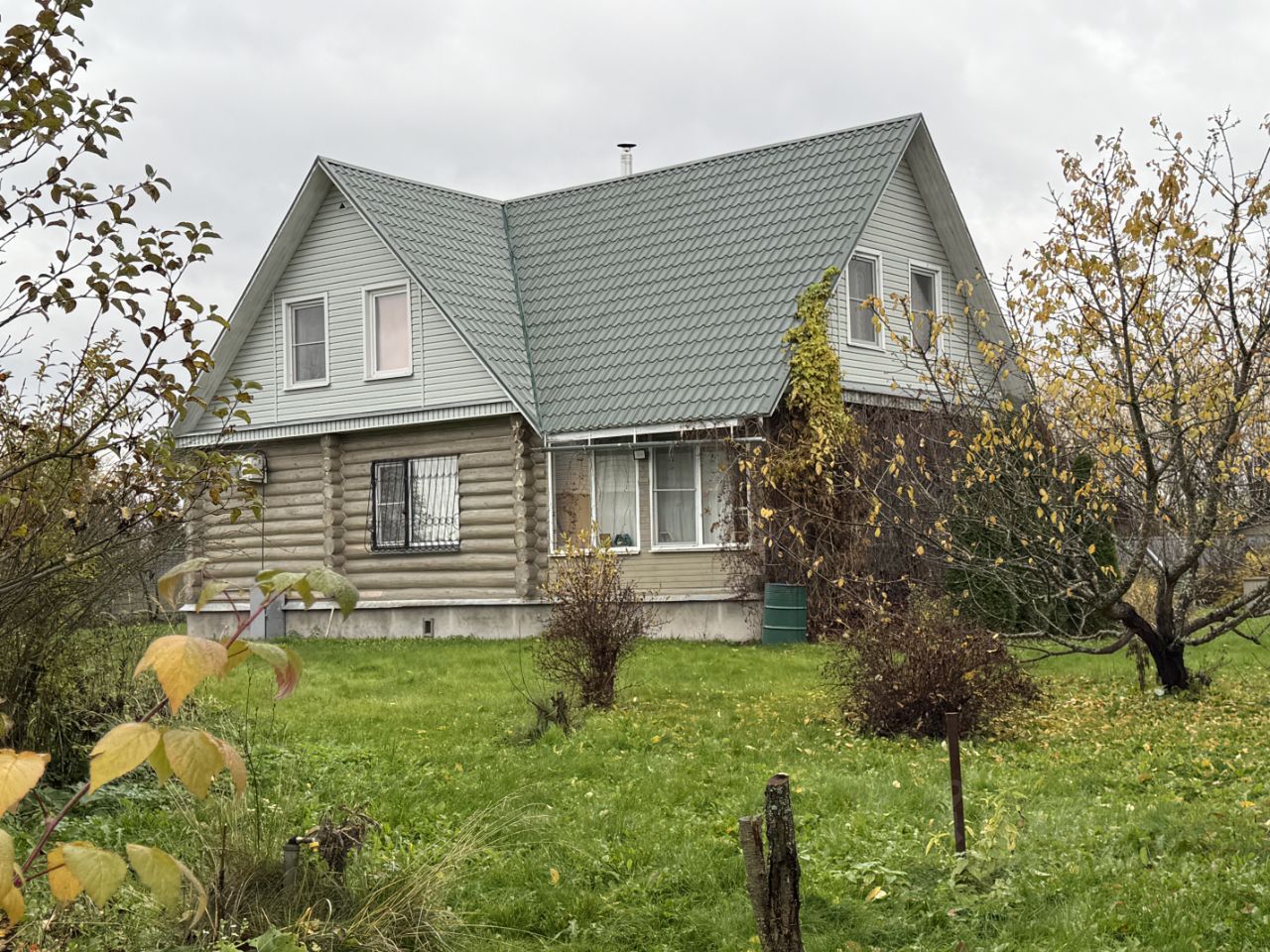 Дом  160 кв.м. , двухэтажный  , рубленный 8х8   + 6х8 терраса с большими панорамными окнами,   перекрытия — дерево, кровля — металлопрофиль,   со всеми действующими коммуникациями: отопление от электрокотла,   холодное и горячее  водоснабжение,   электричество, вода из собственной скважины,   септик . Природный газ по границе участка .
