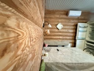 Дом 160 кв.м. , двухэтажный , рубленный 8х8 + 6х8 терраса с большими панорамными окнами, перекрытия — дерево, кровля — металлопрофиль, со всеми действующими коммуникациями: отопление от электрокотла, холодное и горячее водоснабжение, электричество, вода из собственной скважины, септик . Природный газ по границе участка .