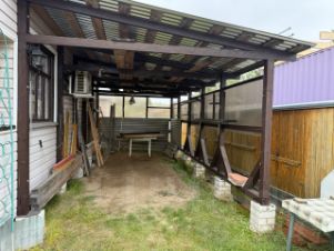 ЖИЛОЙ ДОМ /каркасный/ 35 кв.м состоит из небольшой кухни , коридора , комнаты , + комната на втором этаже с внутренней отделкой -деревом / к дому пристроен навес для а/м