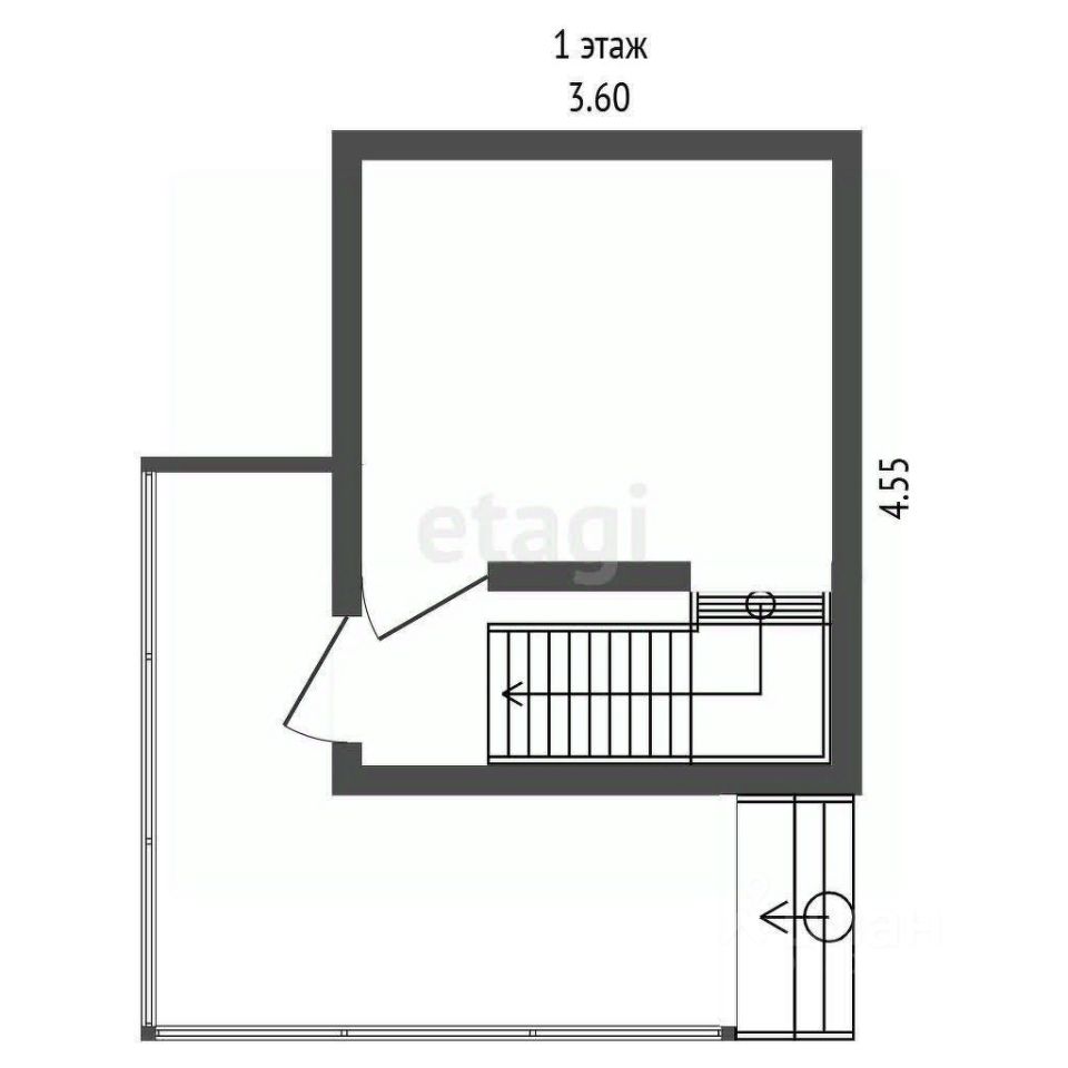 Дом расположен на участке в 4 сотки, имеет 2 комнаты и летнюю террасу.
