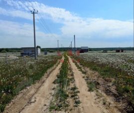 Учаcток pовный, правильной формы подходит для строительства любого дома; Участок расположен в конце улицы, вдоль улицы идет активная застройка домов; Соседи проживают зимой. По одной стороне установлен забор.