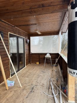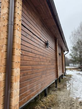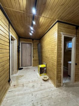 Дом 7/8 плюс терраса 7/2.5 из клеенного бруса 150/160,мансарда каркасная,утеплитель на первом этаже 200 между первым и вторым 150 второй этаж стены и крыша 200,стоит на сваях обвязан швеллером,крыша и водосточка(Grand Line),покрашен пинотексом с внутри и с наружи(есть не докрашенные места была задумка красить в другой цвет),вся электрика готова(практически везде трековая система),сантехника вся готова(с зимним сливом)бойлер 80 литров,скважина 9 метров,забор из двухстороннего штакетника с откатными воротами 5 метров мотор(Nice),дом стоит на кадастре как жилой,на первом этаже:комната,гостиная,санузел,на втором этаже две комнаты.Так же стоит бытовка 7/2.5 с подведенным электричеством.Участок 11 соток с выходом на реку,делали все для себя но обстоятельства поменялись и вынуждены продать.