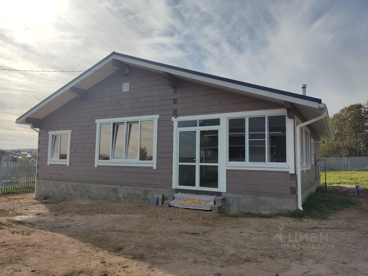 Окна - ПВХ. Крыша - металлочерепица с установленными снегозадержателями и водосливами.