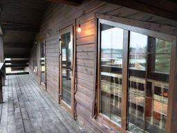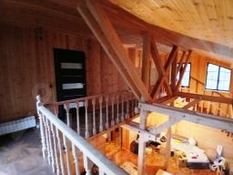 Второй этаж: выполнен по деревянному каркасу, обшивка с обоих сторон произведена вагонкой, утепление между стойками произведена минеральной ватой из базальтового волокна толщиной 250 мм..