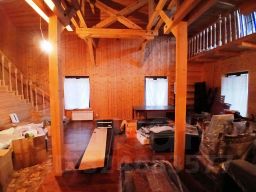 Стены основного дома (первый этаж) , выполнен по деревянному каркасу, обшивка с обоих сторон произведена вагонкой, утепление между стойками произведена минеральной ватой из базальтового волокна толщиной 250 мм.