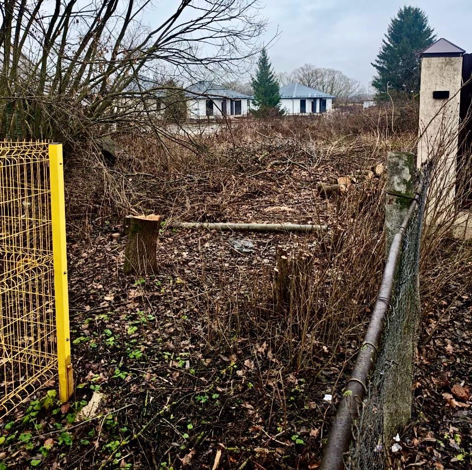 Приличное окружение. По границе участка проведён газ и электричество. На участке маленький дом, подойдёт для размещения рабочих во время строительства.