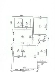4 изолированные жилые комнаты (от 5.6 до 23.1 м²) с отделкой вагонкой.